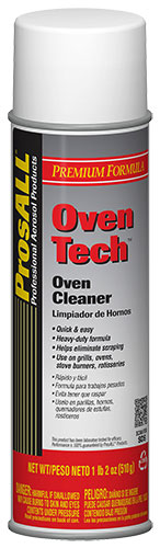 ProsALL® OvenTech™ Oven Cleaner rapidly softens hard, black, baked-on grease and built-up food deposits in institutional ovens. The most hard-baked food deposits are easily removed without scraping. Effective daytime or nighttime cleaner.